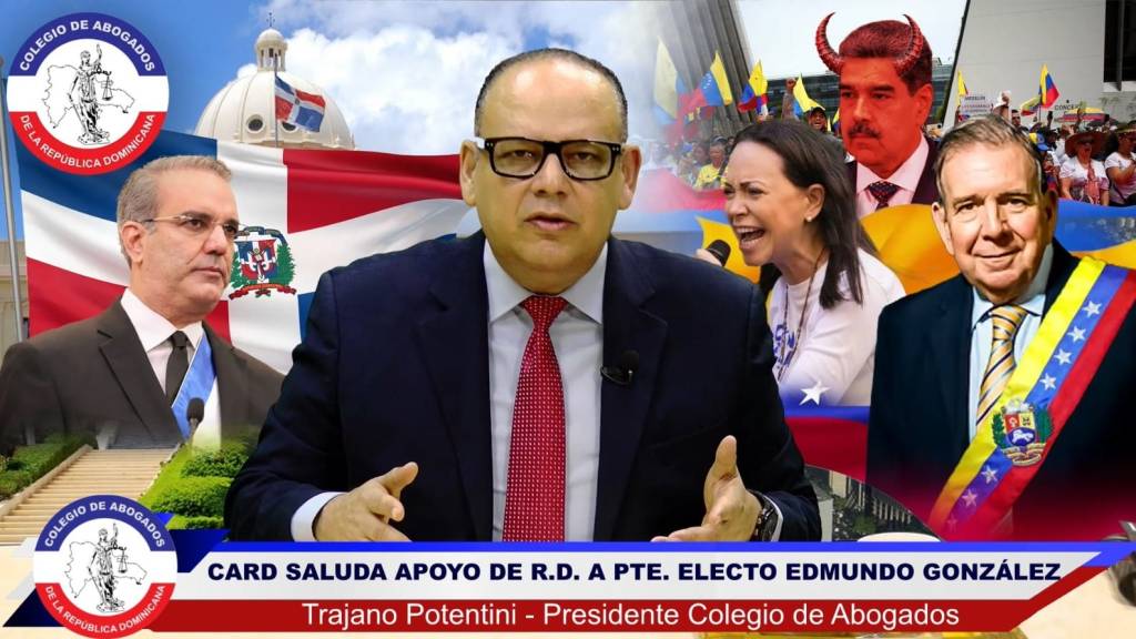 Santo Domingo, República Dominicana, 10 de enero de 2025.– El Colegio de Abogados de la República Dominicana (CARD) saludo y respaldo por segunda vez, lo que ha sido la posición de rechazo del gobierno dominicano al régimen de facto de Nicolás Maduro, perpetrado desde finales del pasado julio 2024 con el fraude colosal de aquellas fatídicas y antidemocráticas elecciones en Venezuela, hoy el presidente Luis Abinader en un contexto de crisis política y social que afecta a la nación sudamericana da un ejemplo de plena identificación con los más altos estándares de la democrática, al recibir y apoyar al presidente electo de Venezuela, Edmundo González.
